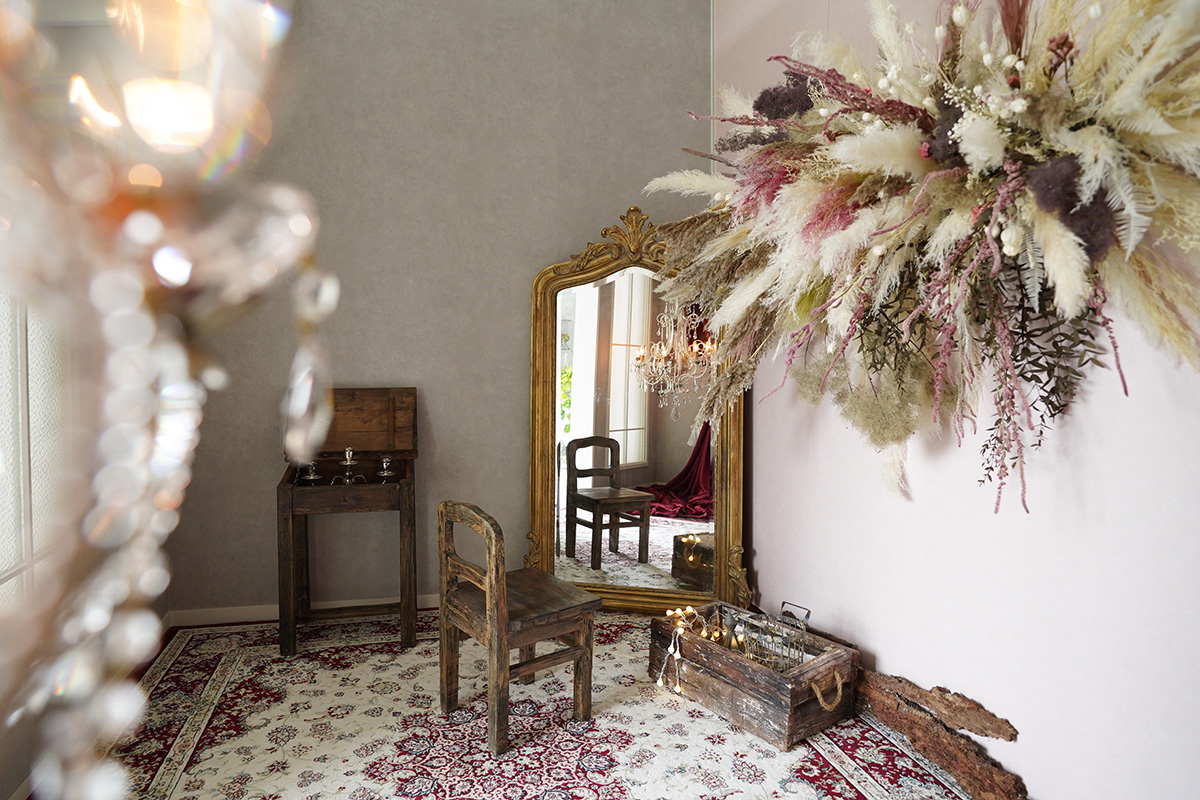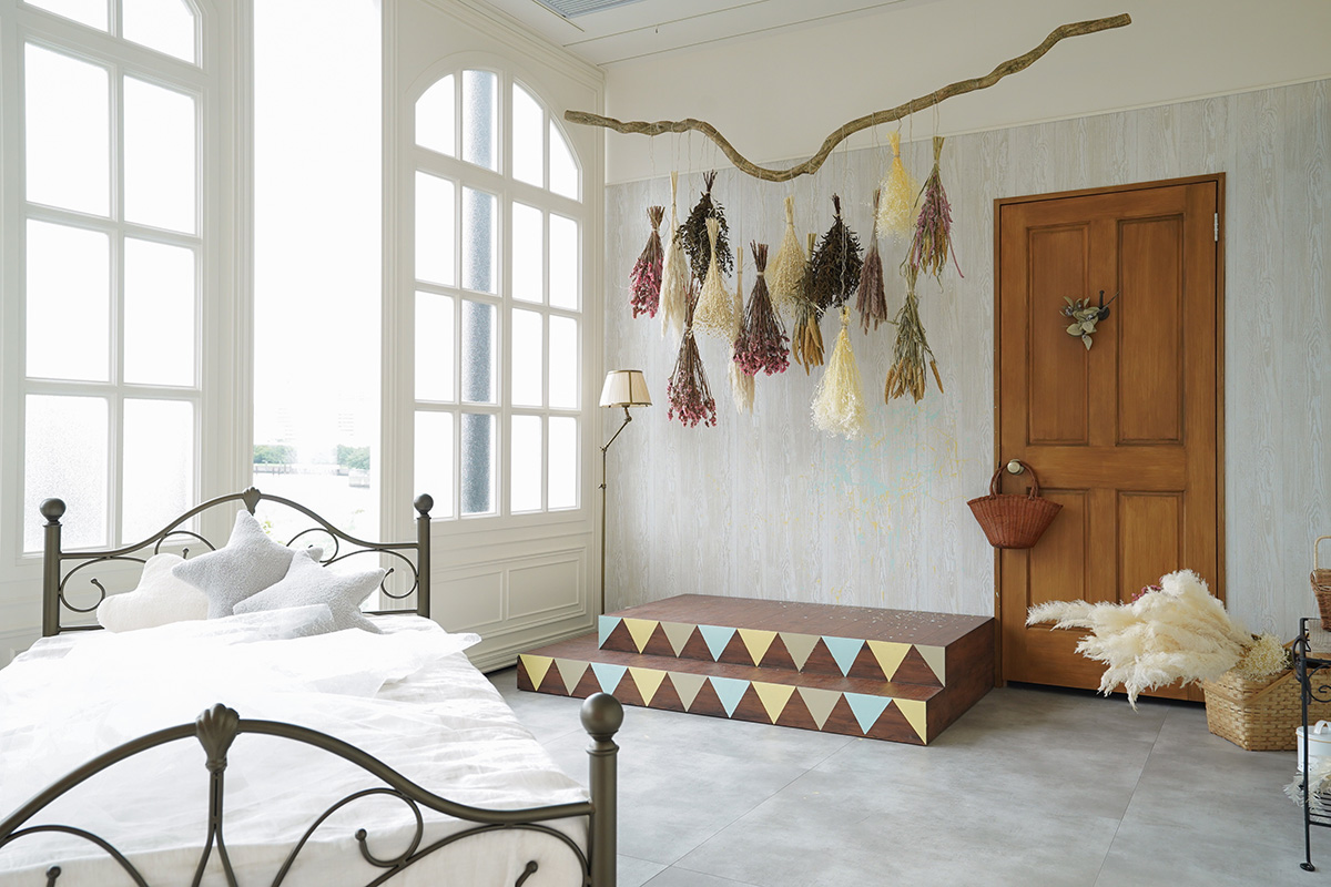 フランスの田園風景の中に佇む、小さな家をイメージし、4つのスタジオを製作しました。 リビングルームは壁一面の窓からお部屋に光が差し込んできます。 シャビーな壁に調度品をアレンジしたアンティークルームに中庭をイメージした明るいガーデン・テラスルーム。子ども心をくすぐる、遊びいっぱいのプレイングルーム。 異なる世界観の中での撮影をお楽しみいただけます。